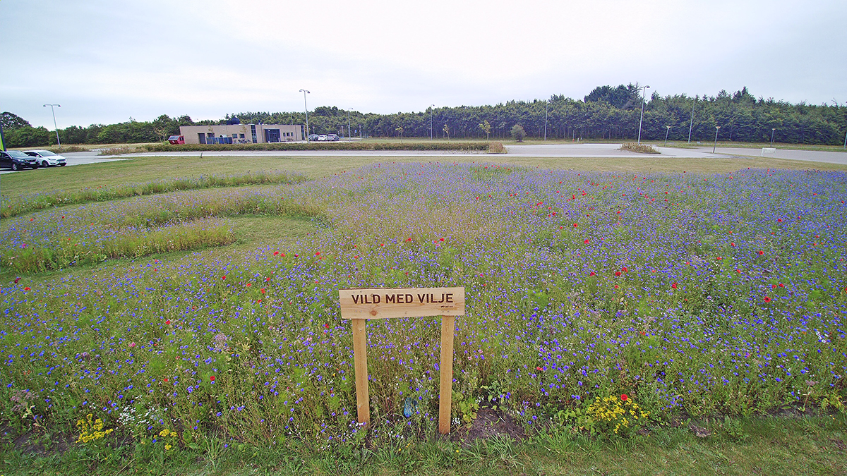 Ved Carl Ras’ engrosbutik i Kolding er 2.350 kvm2 eksisterende græsplæne blevet omlagt til en vild eng med højt græs og blomster.